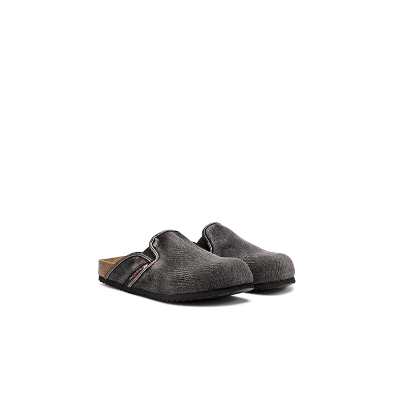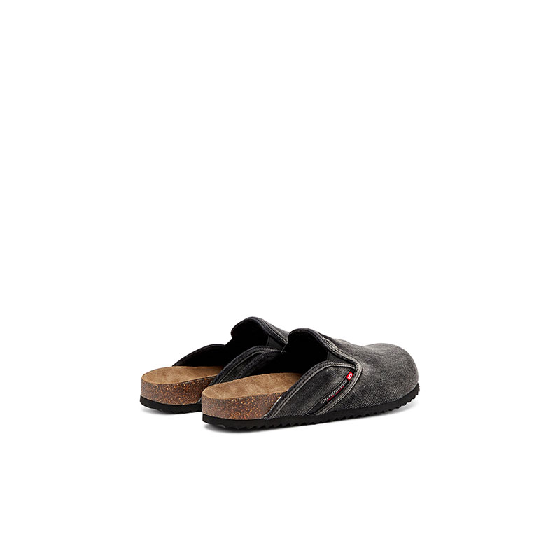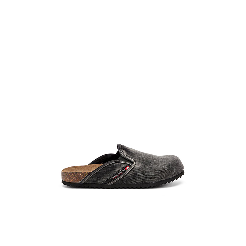 These men's mules rework the rustic, bohemian vibe of a clog in a contemporary way. Endlessly versatile, they're made from washed denim with elasticated inserts and the iconic fifth pocket logo traditionally seen on Diesel jeans. The suede-lined moulded cork-blend footbeds and rubber soles ensure comfort and grip.
