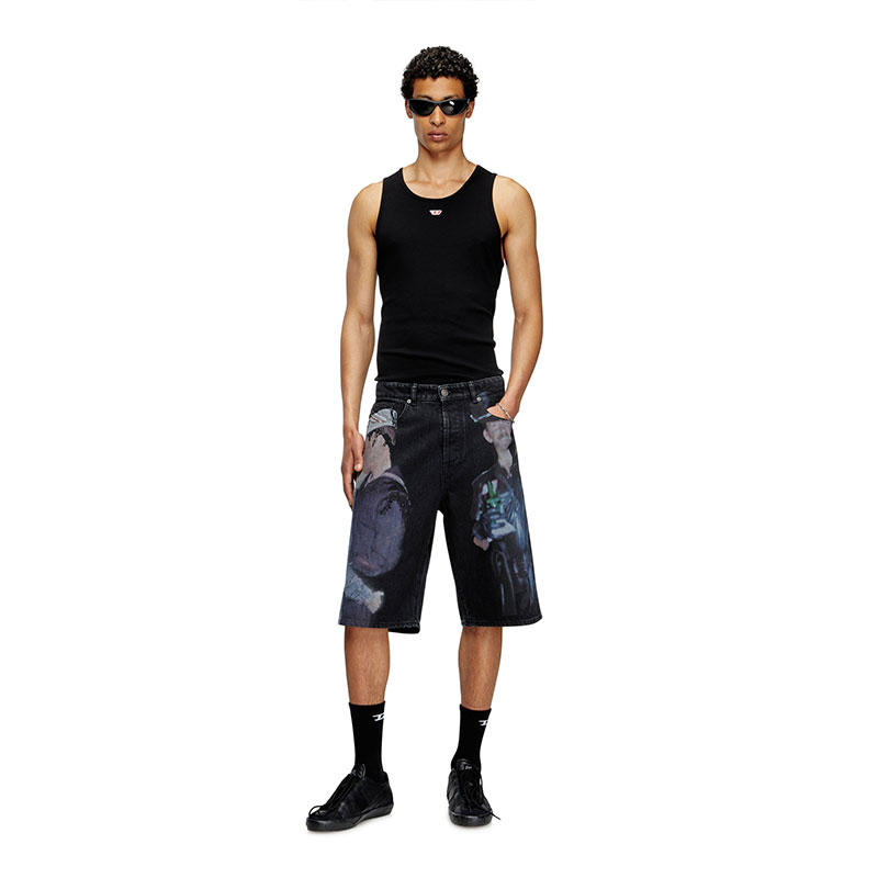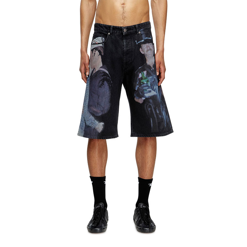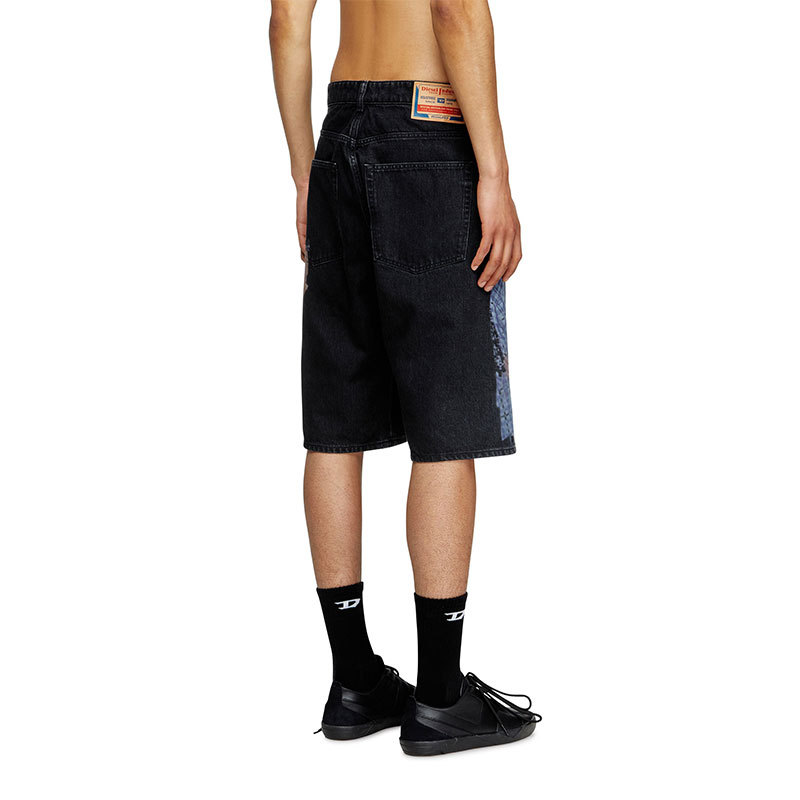 Diesel Men Denim shorts with multicolour print Black P015970EGDA