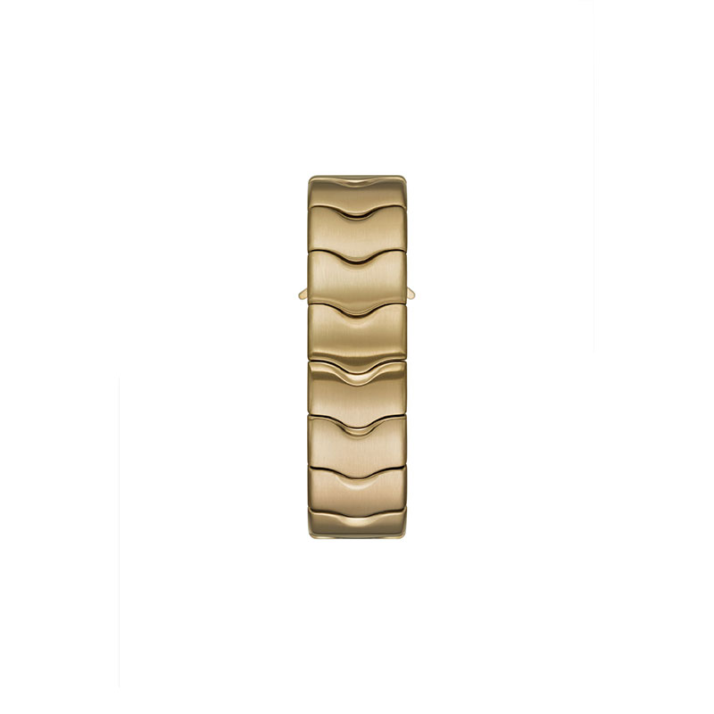Diesel's 22mm Closer watch features a gold sunray dial, three-hand movement, and a gold-tone stainless steel bracelet with a buckle closure.