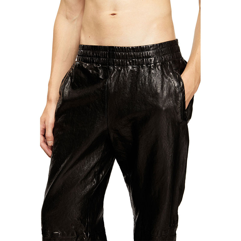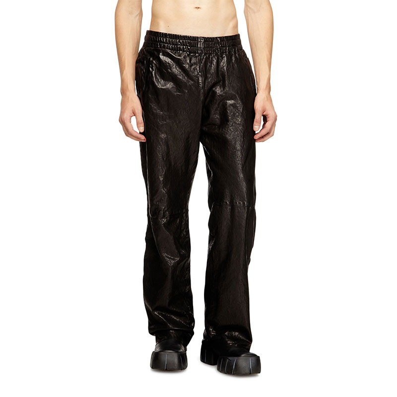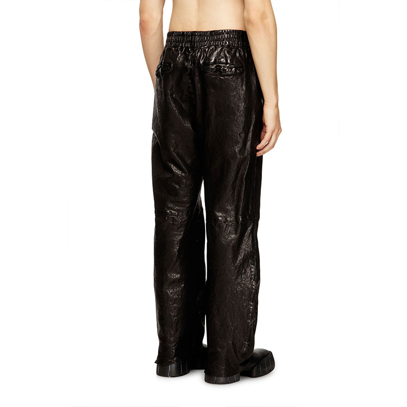 Fresh from Diesel's Fall Winter 2025 Runway Show, these men's pants subvert classic black leather with a boiled treatment for a wrinkled look that catches the eye with extreme three-dimensionality. Topped with an elasticated waist for comfort.