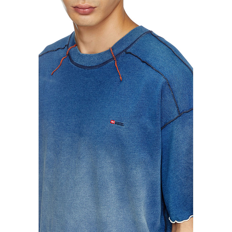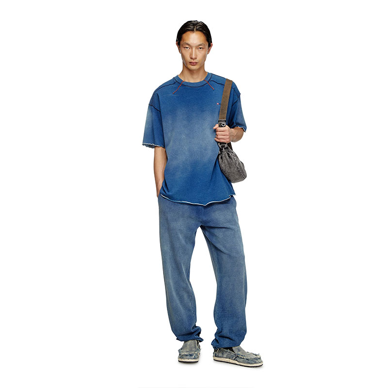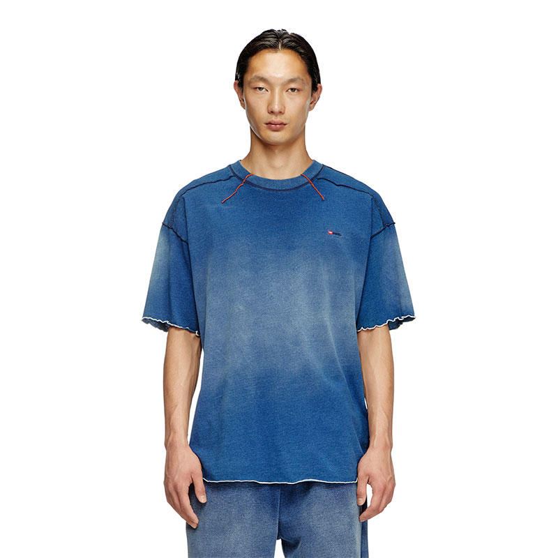 This men’s T-shirt is made from weighty cotton jersey and softly faded right through the middle. Cut for a relaxed fit, the silhouette is accented with tactile seams, contrast overlock stitching and darts framing the crew neck. A micro-sized embroidered logo hallmarks the chest.