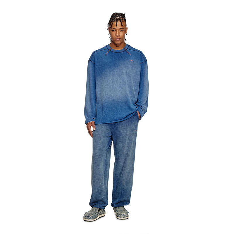 Made from weighty cotton jersey, this men's long-sleeve T-shirt has been faded through the middle and embroidered on the chest with a micro-sized logo. Contrast overlock stitching, neck darts and raised seams bring tactile and visual intrigue to the relaxed silhouette.