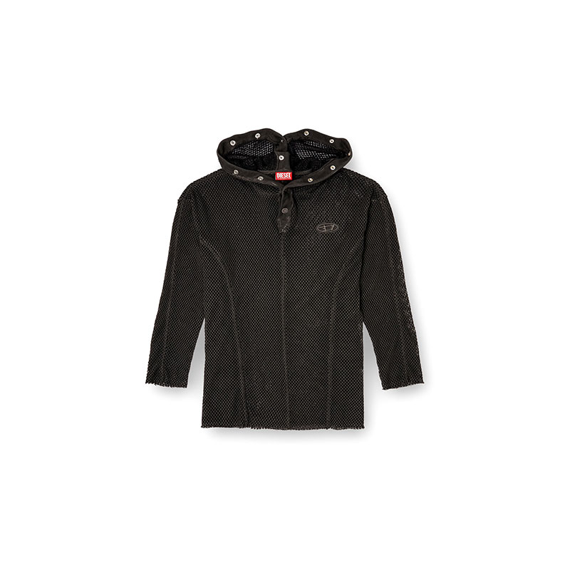 Diesel Men Fishnet hoodie with full-closure hood Black P015810SPBW
