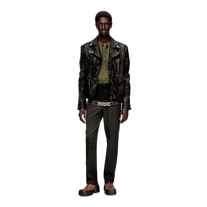 Diesel Men Henley top in treated wide-rib jersey Green A199460DCCB