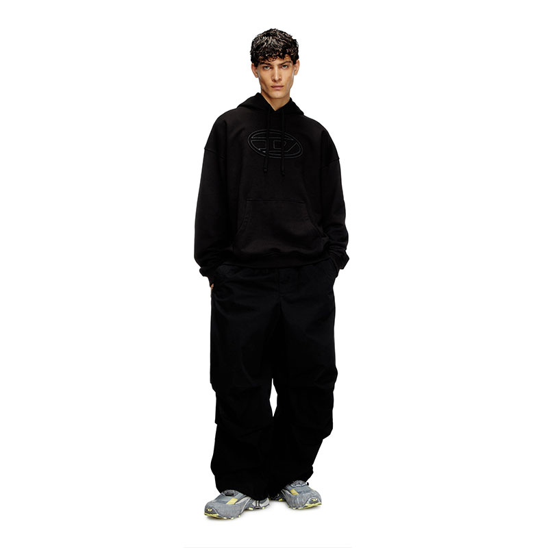 This oversized hoodie is an all-gender piece embossed on the front with a big Oval D – a printed outline gives the iconic logo a subtle colour touch. It's crafted using organic cotton and finished with flexible ribbed trims.