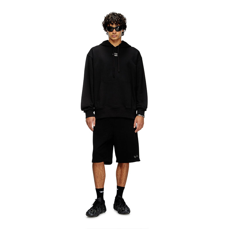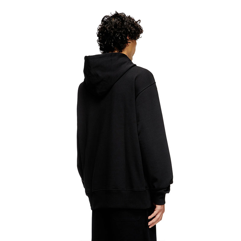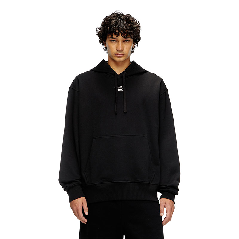 Men's hoodie in loopback jersey, crafted using organic cotton. This piece is cut for an oversized fit and embellished with a more-than-meets-the-eye Oval D – the silver logo looks like a metal plaque, but is in fact synthetic, created using an injection moulding technique.