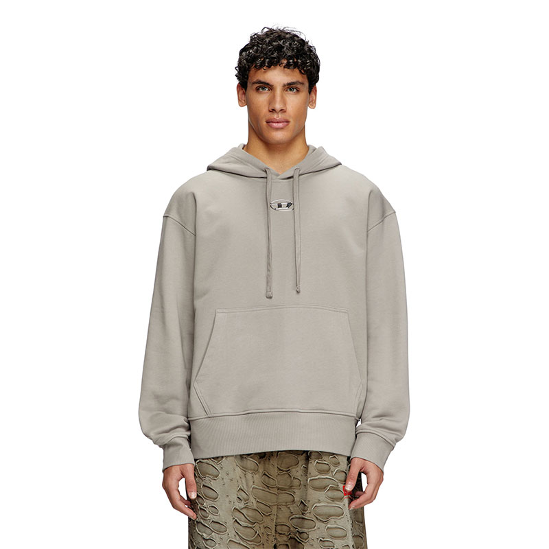 Diesel Men Hoodie with metallic logo Grey A098560BMBJ