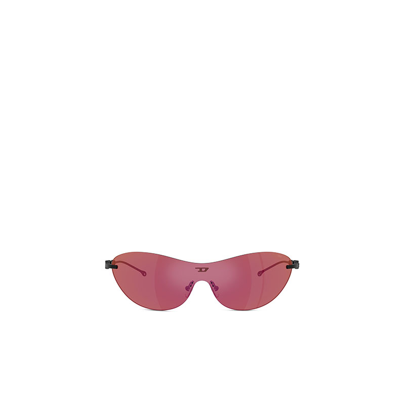 This streamlined rimless shield plays with Diesel archive for its temples and freshen them up. Temples spotlight on one side D-icon logo that fades into oval holes with alluring organic sections. Diesel logo is subtly placed at the center of the shield in matching shades finishing treatments.