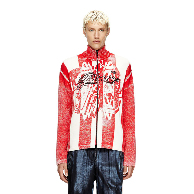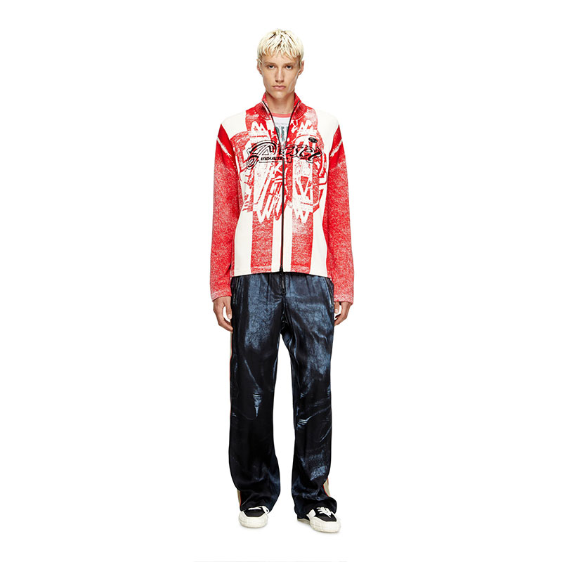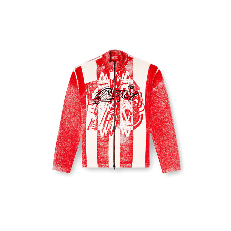 Diesel Men Inside-print striped zipped cardigan Red/White A194690NKCJ