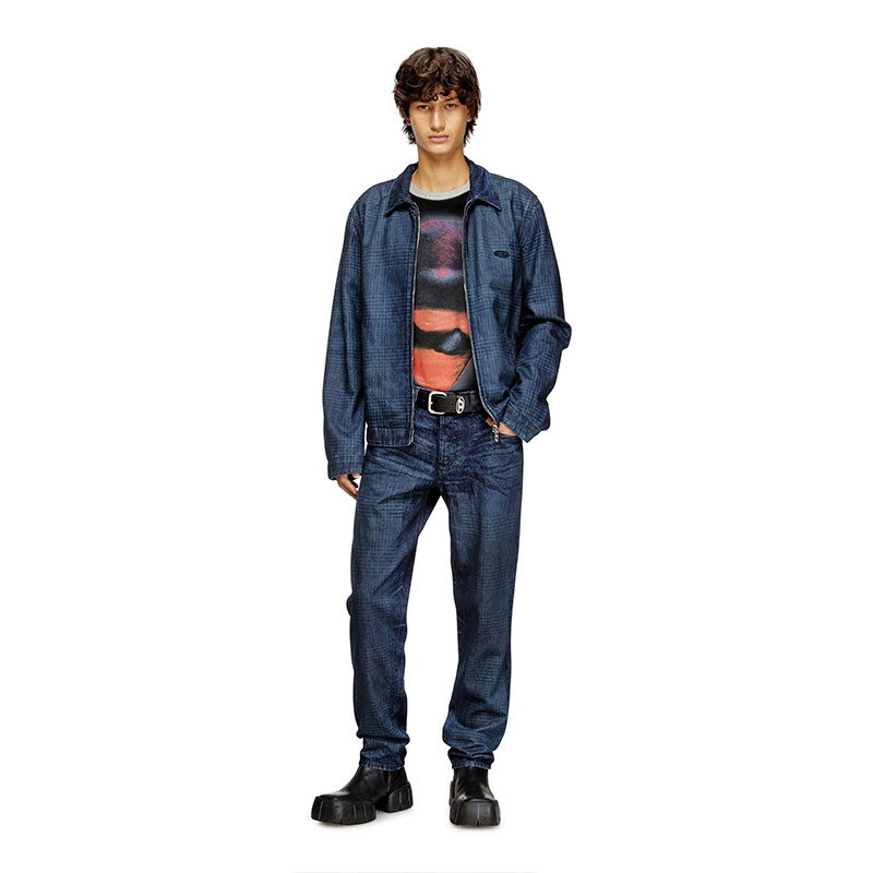 This men's zipped jacket features a minimal, sleek blouson profile, lined for smooth layering.Crafted from a combination of cotton and hemp, the fix denim nods to traditional tailoring, while keeping true to Diesel's DNA. A subtle Prince of Wales pattern is meticulously traced onto the fabric using multiple laser passes. Iconic whiskering and stonewash effects blend with the checks, while a final spray treatment enhances the deep, dark blue hue.