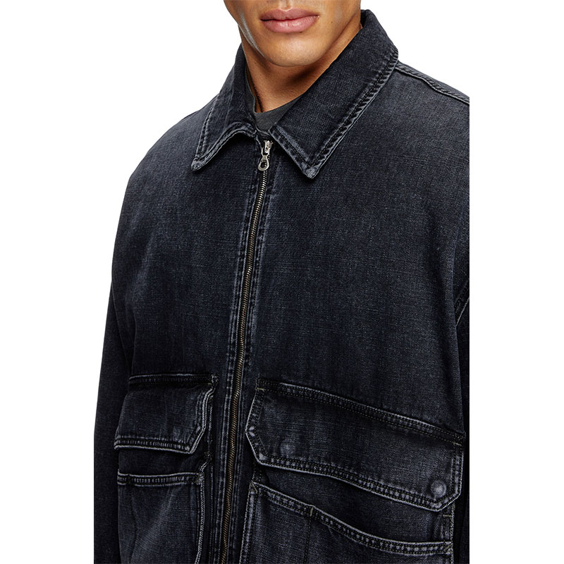 Diesel Men Jacket in lasered cotton-hemp denim Black A21614007DB