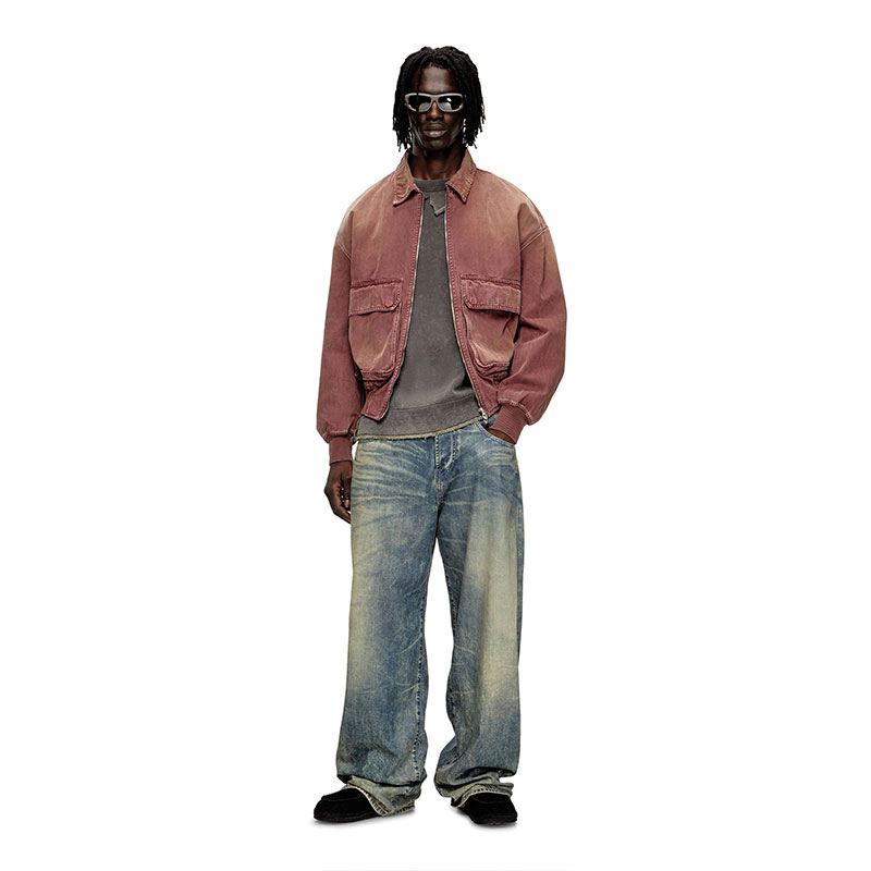 Designed to lend an edgy twist to everyday "uniform" dressing, this fix denim stands out with a refined herringbone pattern in a soft indigo colour, creating a subtle pinstriped effect. This exclusive wash is part of Diesel's DNA selection, showcasing the brand's heritage and essential style codes. Available only in Diesel flagship stores and on diesel.com.
