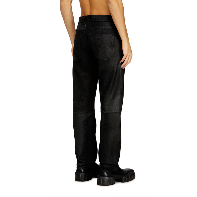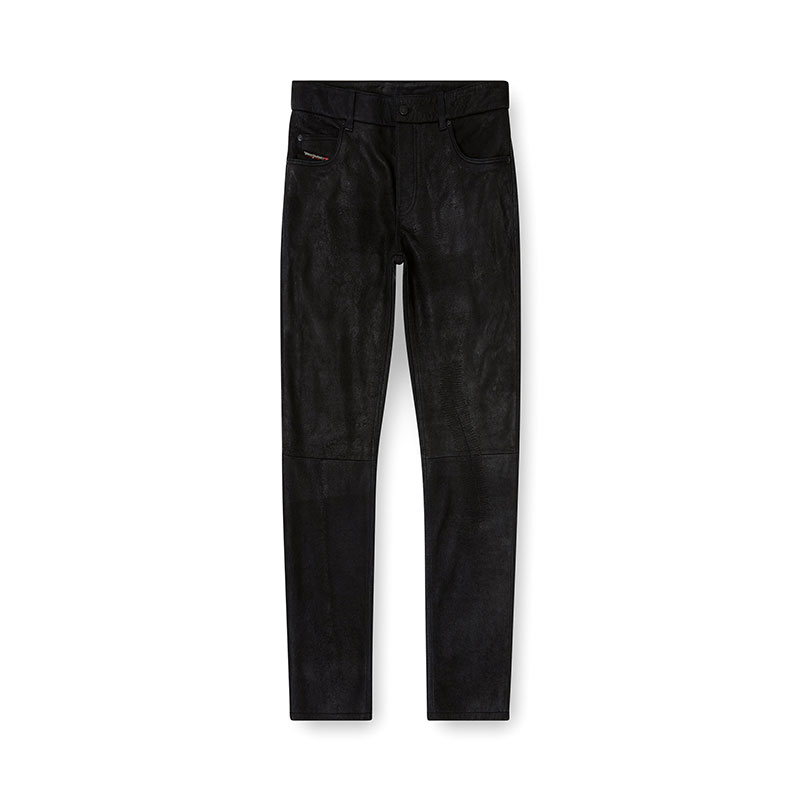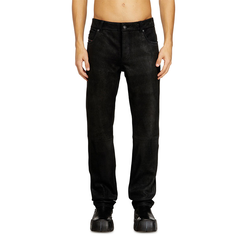 An irreverent spin on five-pocket denim, these men’s trousers carry all the hallmarks of jeans – but are crafted from leather. Responsibly sourced, the leather is washed, hand-treated and subtly distressed to create the final look. Complete with a button fly and Diesel's iconic fifth pocket logo flag.