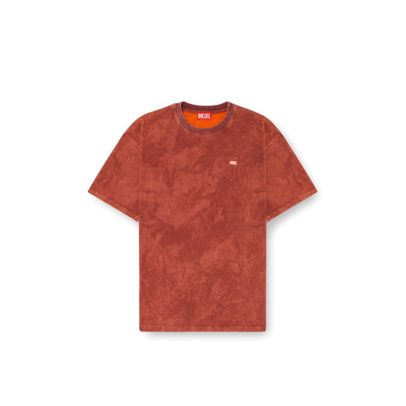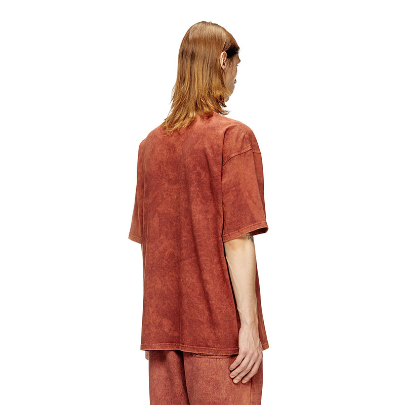 Crew neck t-shirt with short sleeves and relaxed fit, made from vanisé jersey. The garment is crafted using random acid-washed dyeing and washing techniques, giving it a worn-in look. The logo is applied on the left side of the chest.