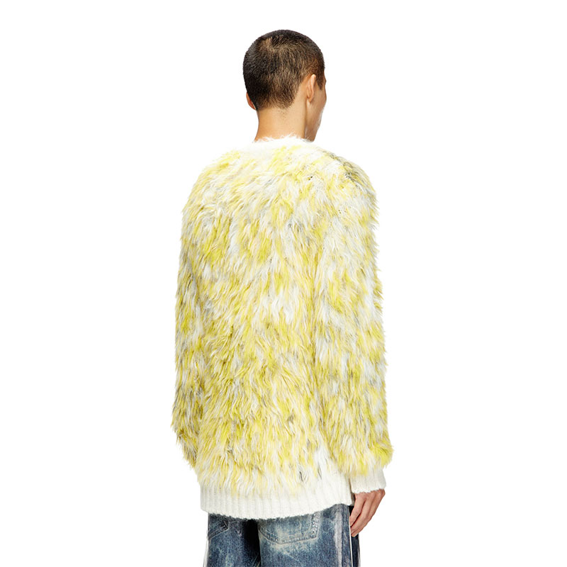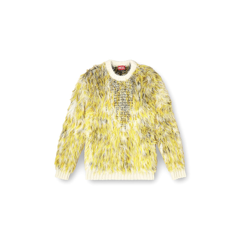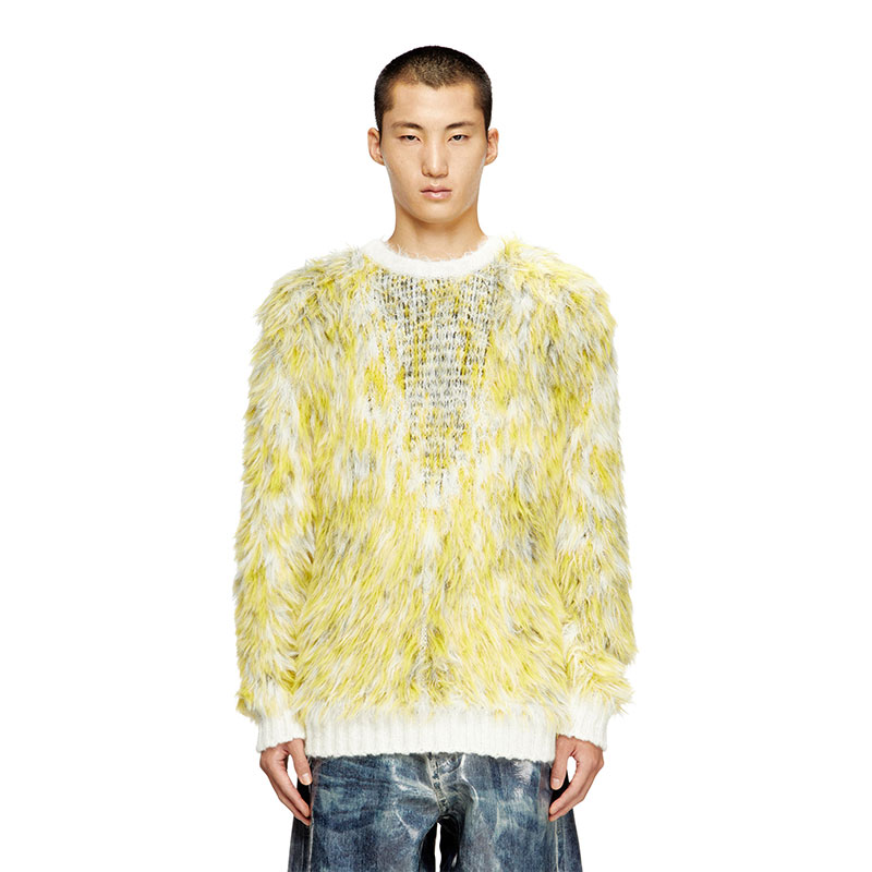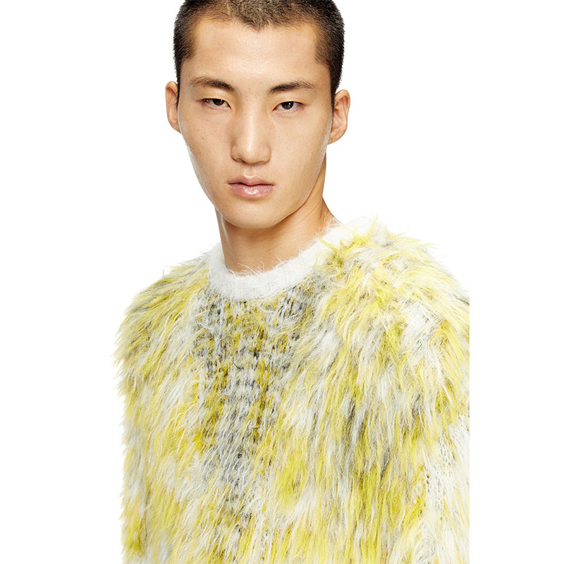 Part of the Fall Winter 2025 Runway Show collection, this men's sweater is an ultra-fluffy multicolour jacquard knit cut with fearless jolts of acid yellow. Designed for a regular fit.