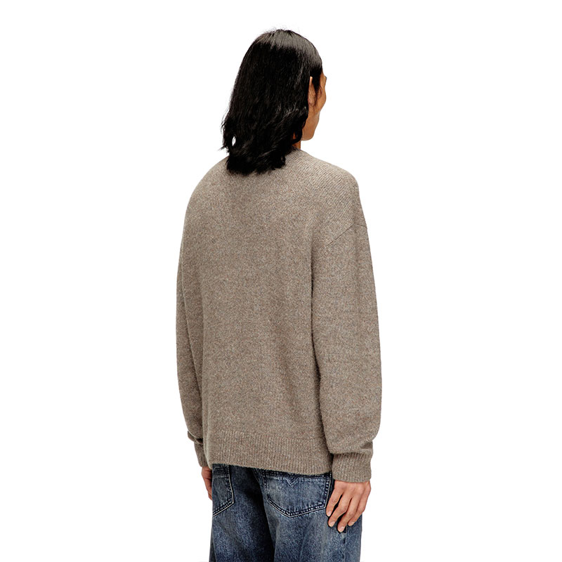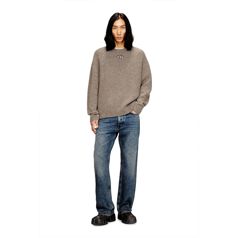 Spun from chunky yarn rich in responsibly sourced wool and alpaca, this men’s sweater is soft, warm, and built on a classic silhouette. An embroidered cut-out of the iconic Oval D logo disrupts the front, adding an unconventional Diesel twist.