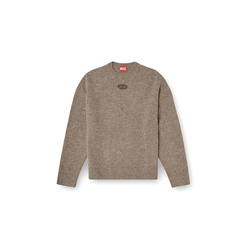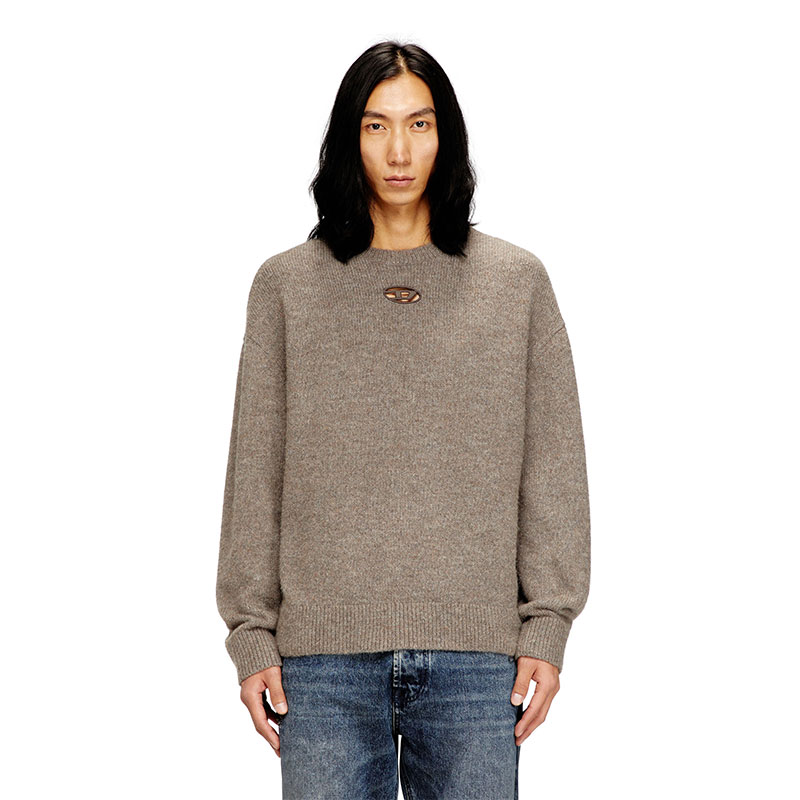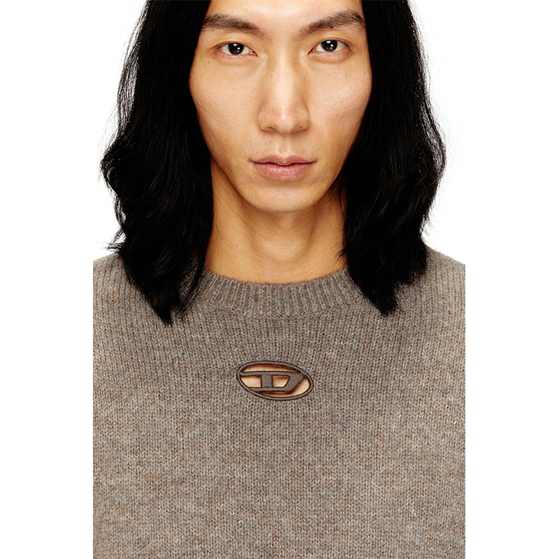 Spun from chunky yarn rich in responsibly sourced wool and alpaca, this men’s sweater is soft, warm, and built on a classic silhouette. An embroidered cut-out of the iconic Oval D logo disrupts the front, adding an unconventional Diesel twist.