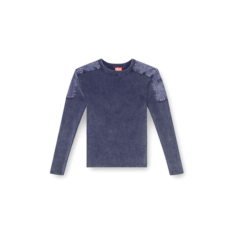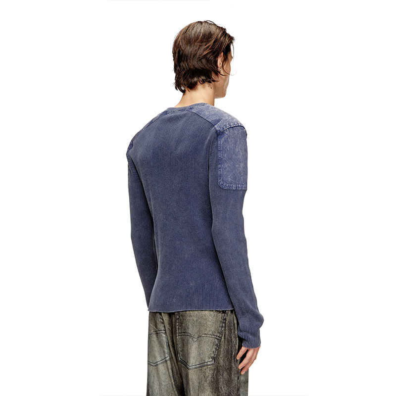 For the utilitarian city-dweller, this men’s jumper is defined by its marbled fade and contrasting treated fabric panels that frame the shoulders. It’s rib-knitted from cotton in a close-fitting silhouette and hallmarked with an embroidered Oval D on the sleeve.