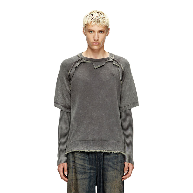 Diesel Men Layered sweater with destroyed effect Dark grey A188980NKCQ