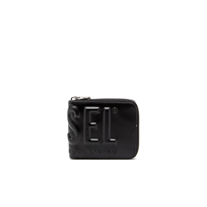 Men’s compact wallet in butter-soft nappa leather, embossed with a jumbo version of the Diesel Biscotto logo. Fastening with a secure all-around zip, this accessory can accommodate cards and notes and has a pocket for coins.