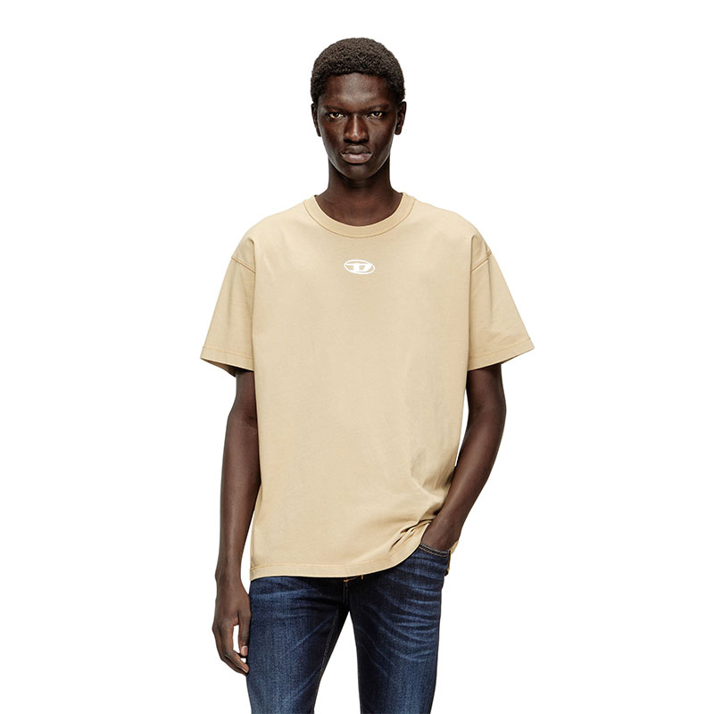 Diesel Men Light cotton T-shirt with metallic Oval D logo Beige A202970JMBB