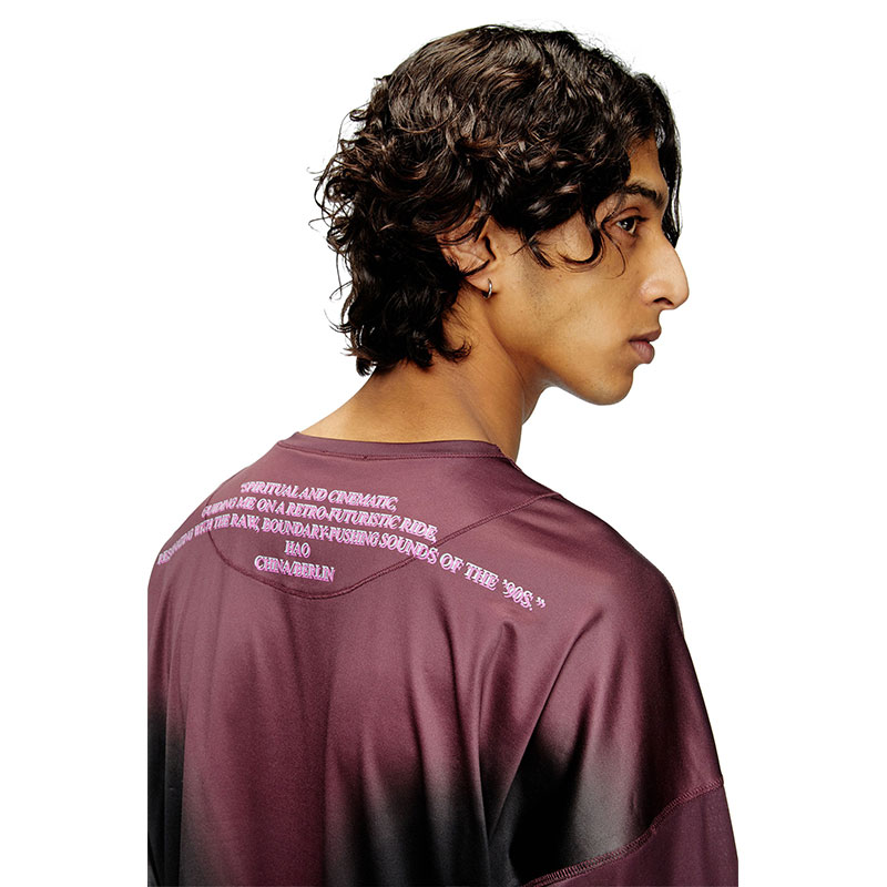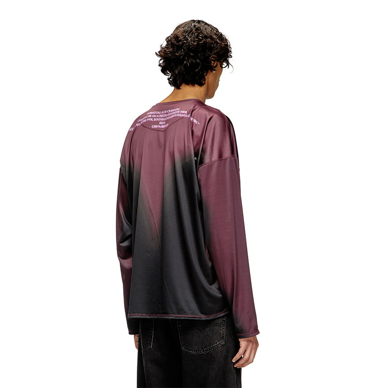 Men's long sleeved T-shirt from the Remaster collection, a tribute to groundbreaking DJs worldwide. Crafted from fluid technical fabric with shaded colour effects, it's personalised with lyrics or quotes chosen by the DJs participating in this capsule, merging fashion with music in a deeply personal way.