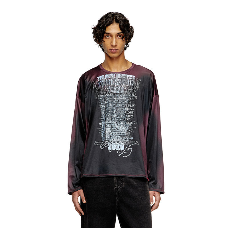 Diesel Men Long-sleeve tech-jersey T-shirt with lyrics print Black/Violet A197210HGBN