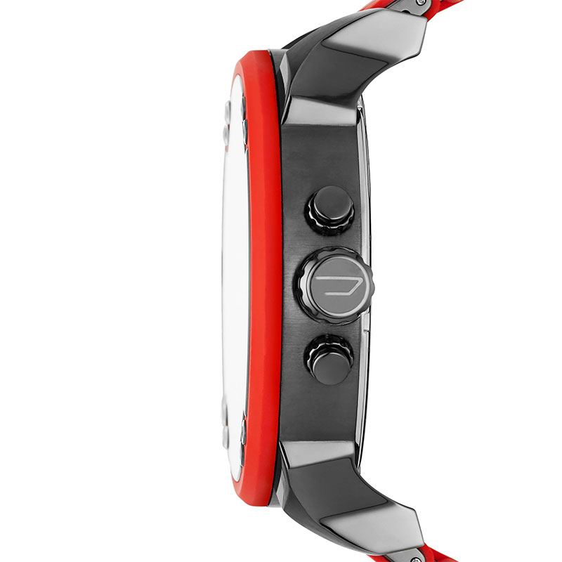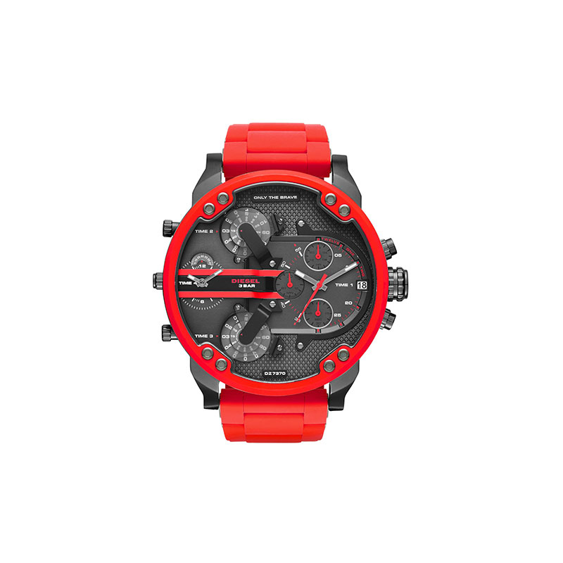 Be the best-accessorized guy in the room with the red metal Diesel Mr. Daddy 2.0 watch. The oversized gunmetal dial features the Diesel logo and “Only the Brave” tags.