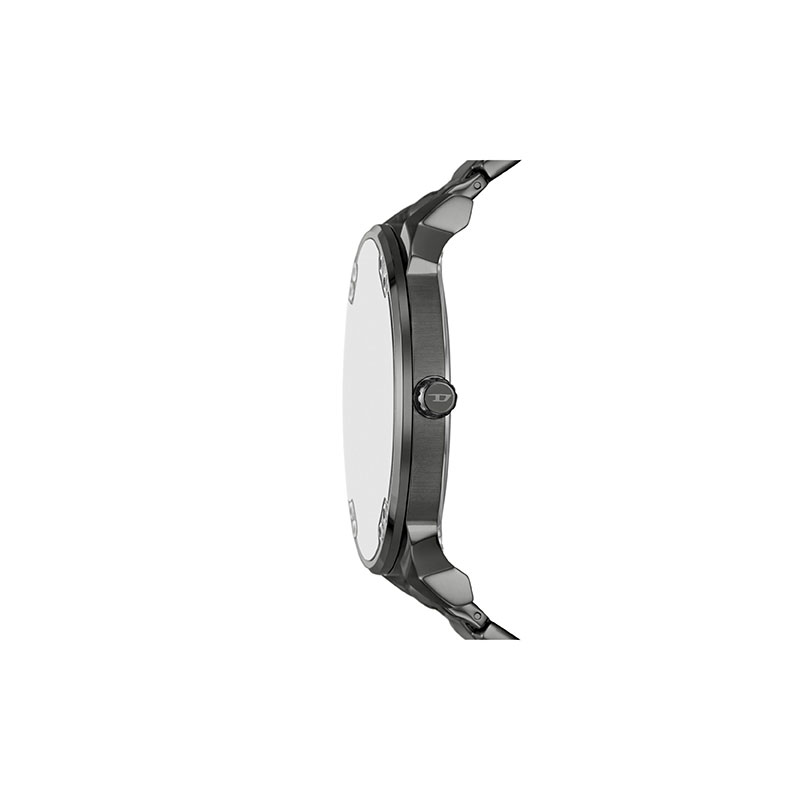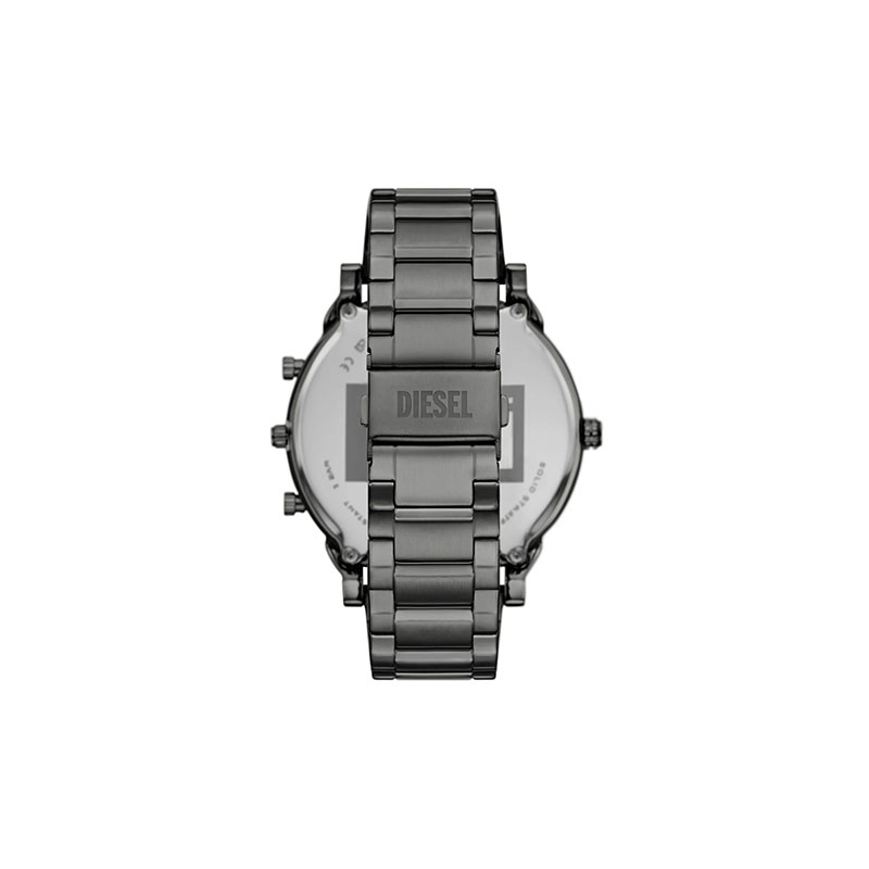 Diesel's 54mm Mr. Daddy Slim watch features a green and white dial, multi-movement and a gunmetal stainless steel bracelet.