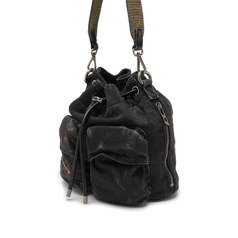 Diesel Men Multi-Pkts-Multipocket bucket bag in washed denim Black X10375P4485