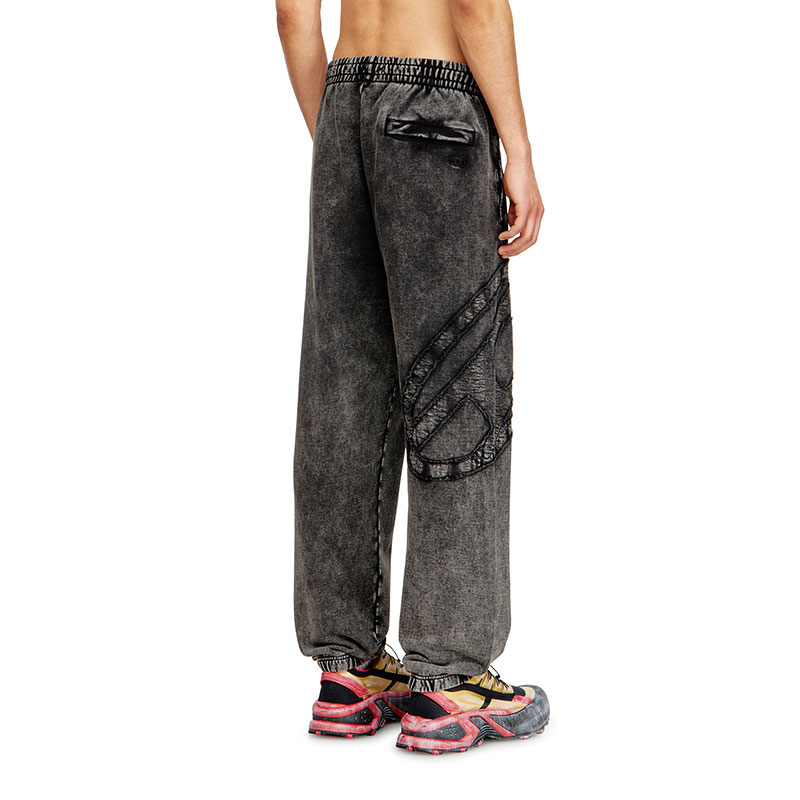 These regular-fit sweatpants are crafted from organic cotton fleece. Featuring an elastic waistband with an internal drawstring and elaticaed leg cuffs for comfort, they're fitted with front welt pockets and a single back pocket. The fabric is garment dyed, with an acid wash creating a uniquely nuanced finish. The maxi Oval D application on the right leg, finished with raw edges, and the small Oval D embroidery below the front left pocket complete the style.
