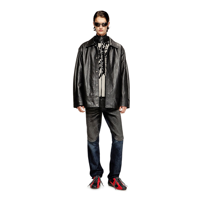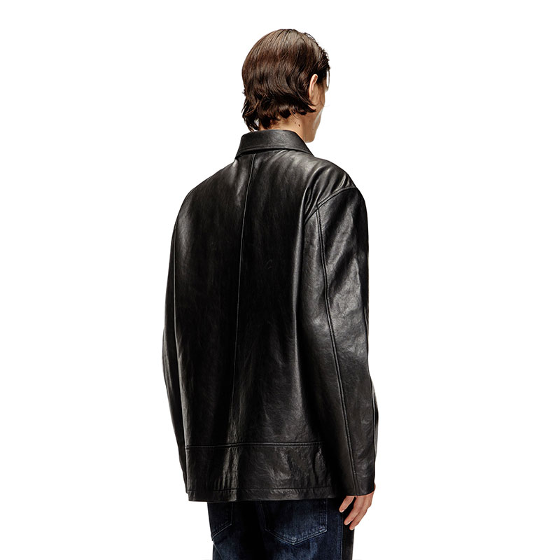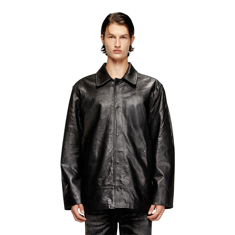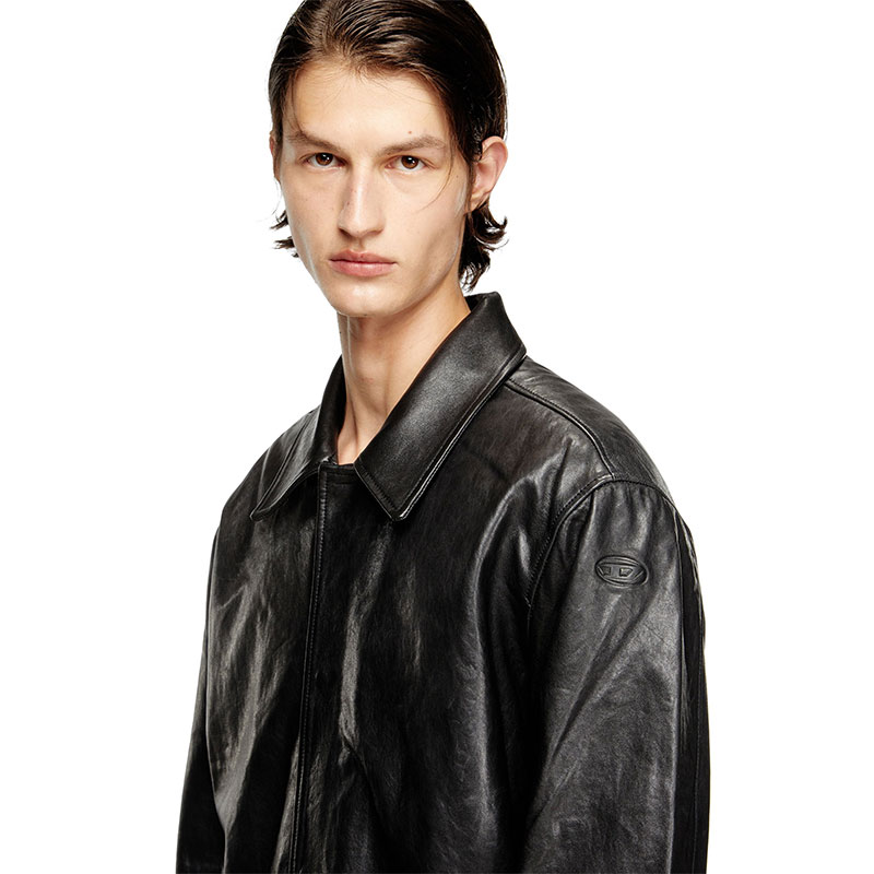 This men’s jacket is crafted from supple leather that has been sourced responsibly. Lightly padded for insulation, it features a clean, minimal profile with a classic pointed collar and hidden snap fastenings down the front. An embossed Oval D logo hallmarks the sleeve.