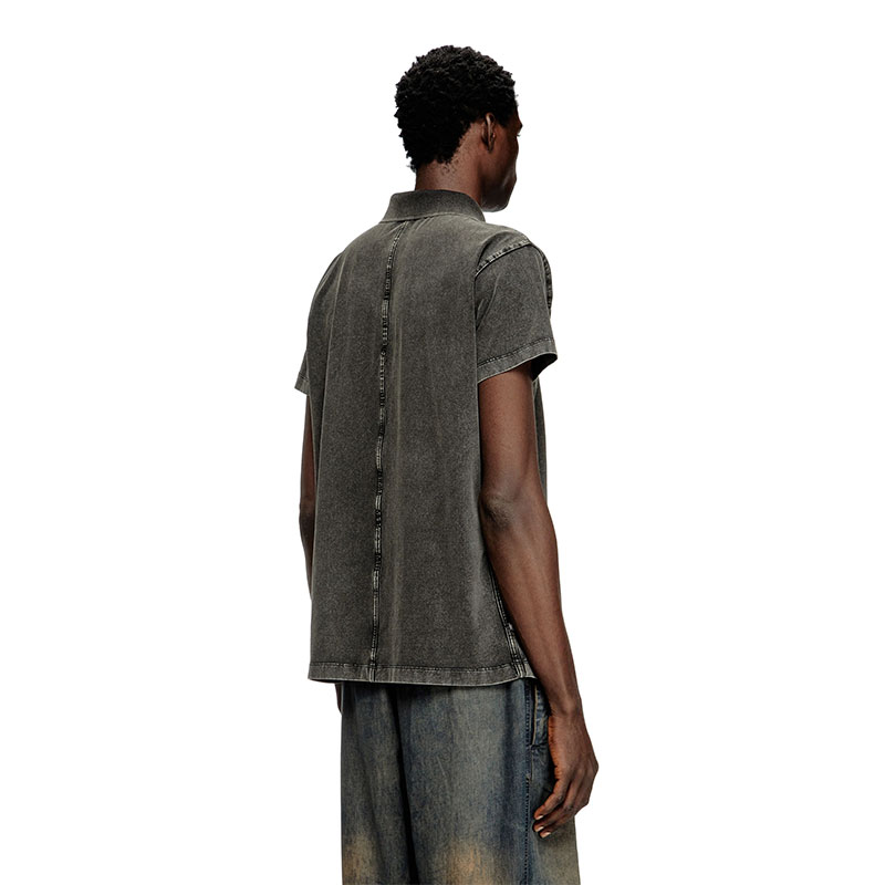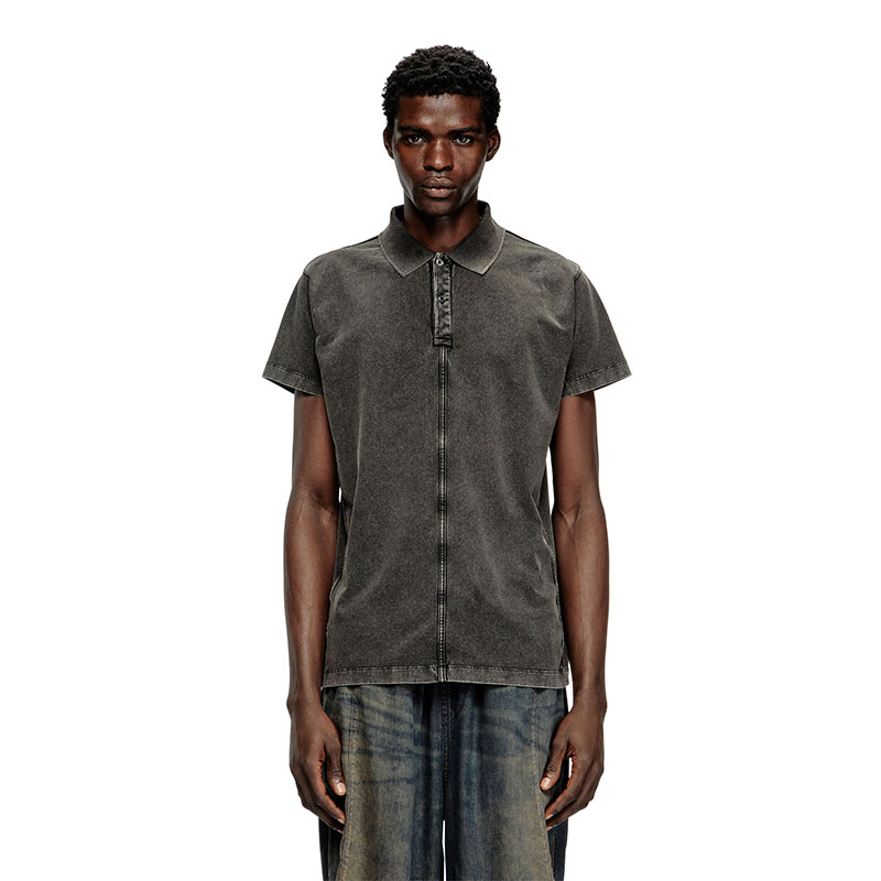 This men’s jersey polo shirt is a fresh twist on Diesel’s iconic fabric, featuring a slim, panelled design that tricks the eye into thinking it’s faded black denim. Our signature fifth-pocket flag adorns the side.