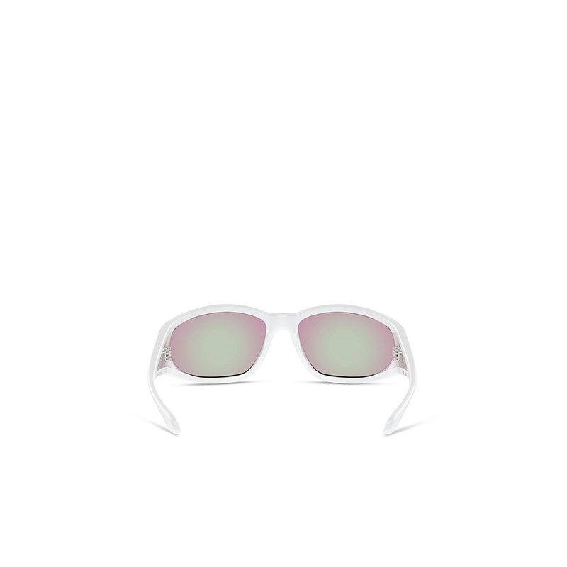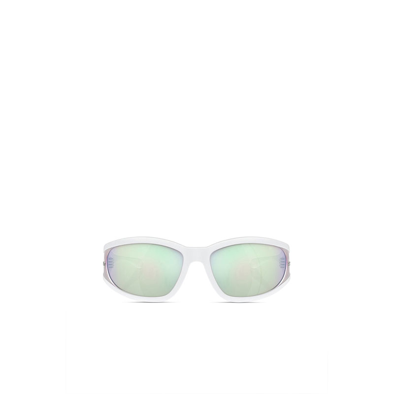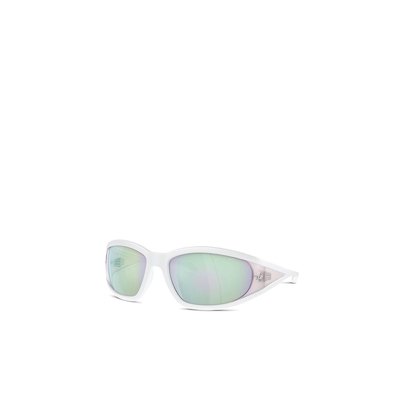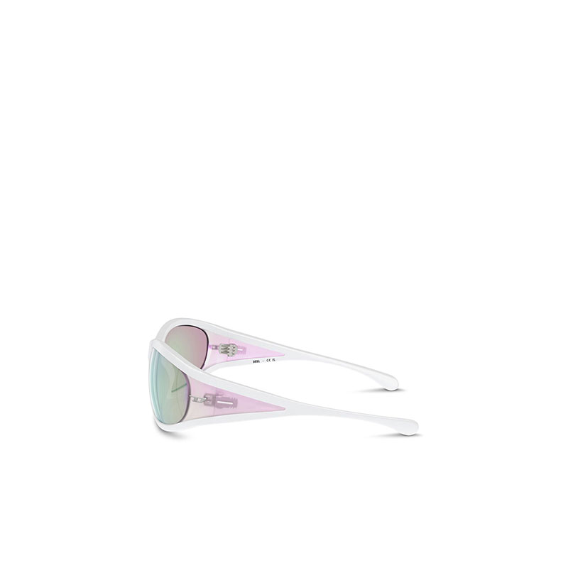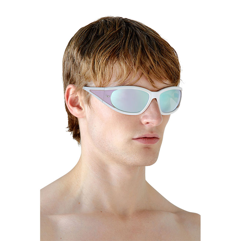 An elongated and ergonimic wrap shade that has a functional and Diesel-driven aesthetic. It provides gender-inclusive opportunities for shape and colors. The style features deeper lenses and bold temples. The D-logo is placed on both sides over a color-blocking shiny/matte level