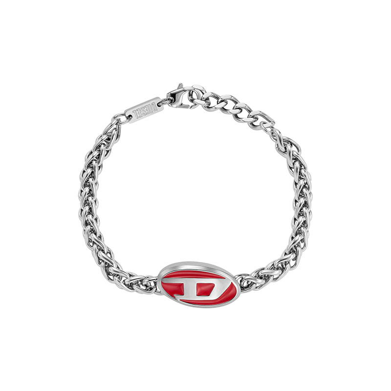 Diesel's chain bracelet features red enamel and stainless steel and a lobster clasp closure.