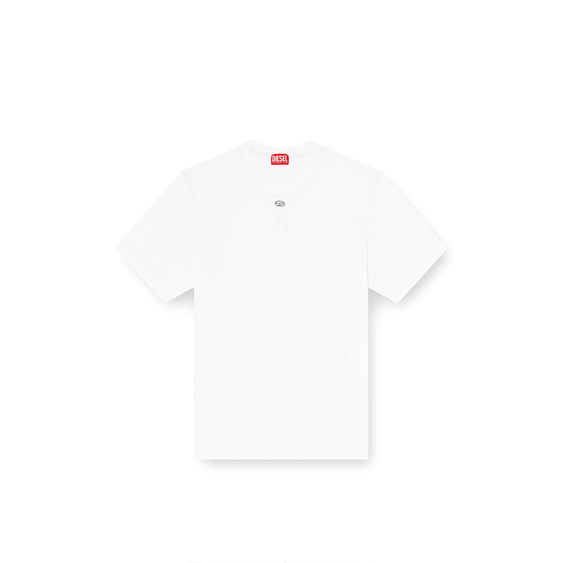 Crew neck T-shirt with short sleeves and a regular fit, made from cotton interlock jersey with elasticated trims for extra comfort. The ribbed triangle detail under the collar with a metallic Oval D logo transfer adds a distinctive visual element. The organic cotton fibers ensure freshness and breathability.