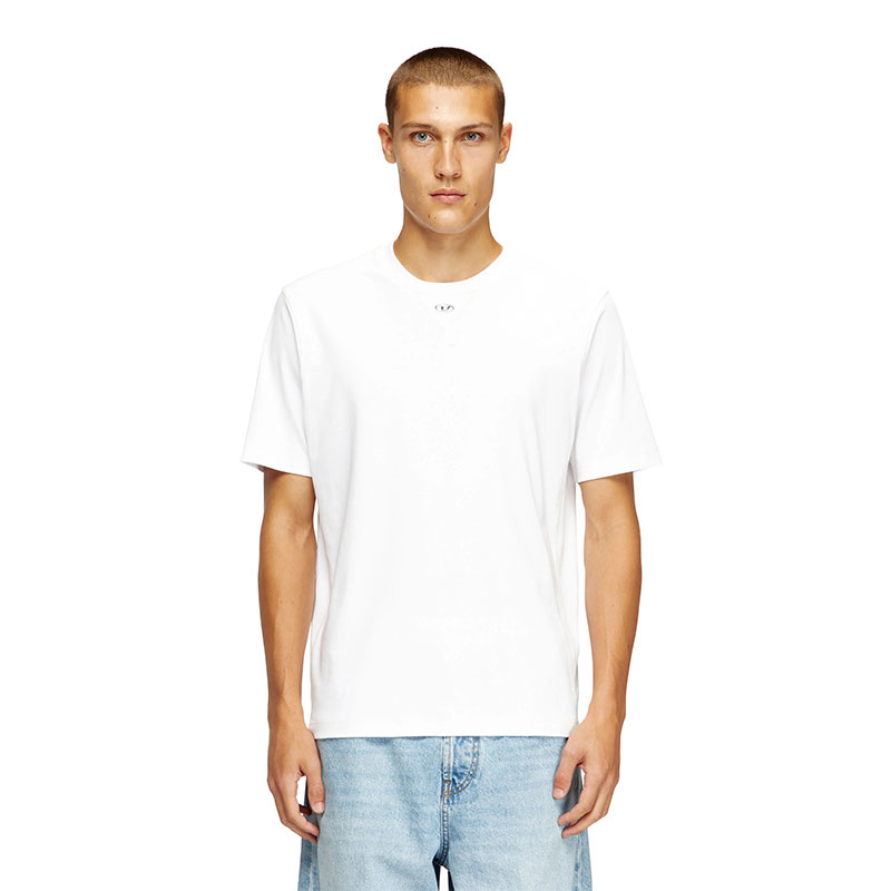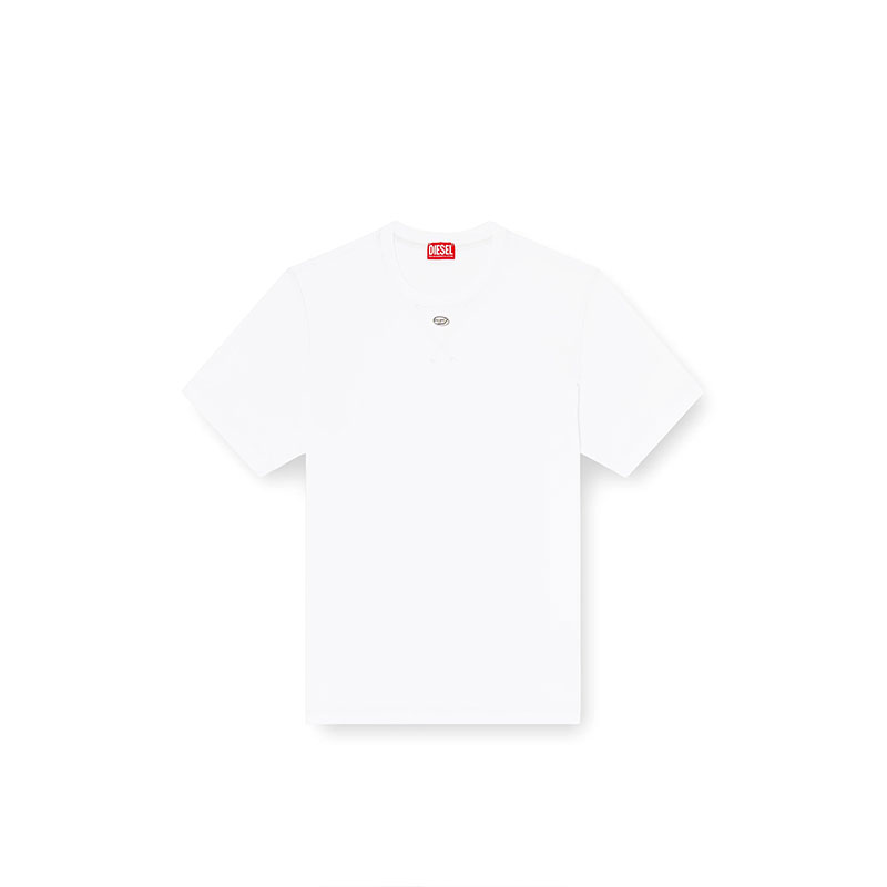 Crew neck T-shirt with short sleeves and a regular fit, made from cotton interlock jersey with elasticated trims for extra comfort. The ribbed triangle detail under the collar with a metallic Oval D logo transfer adds a distinctive visual element. The organic cotton fibers ensure freshness and breathability.