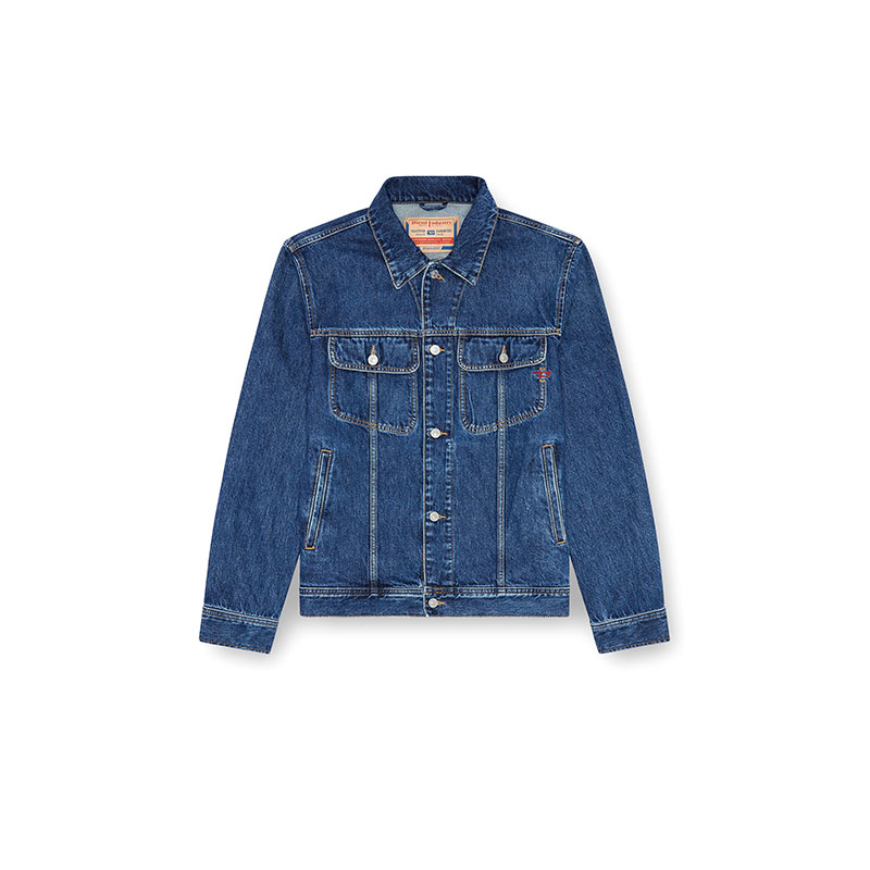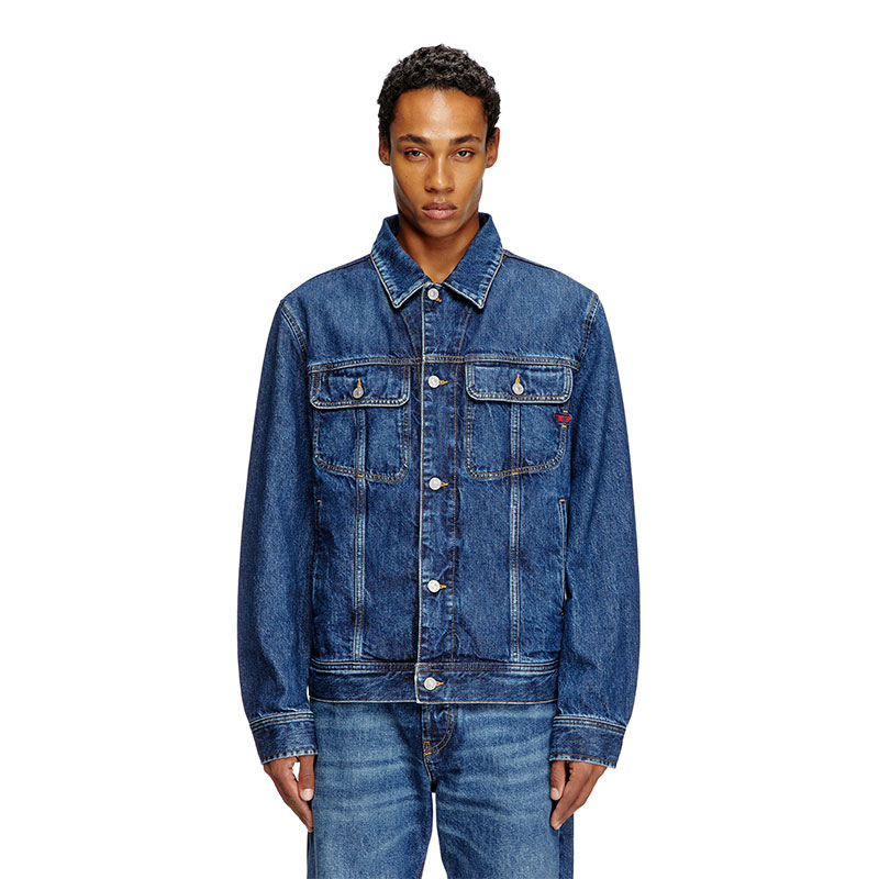Denim trucker jacket, cut for a regular fit and subtly embellished with a red embroidered D logo.