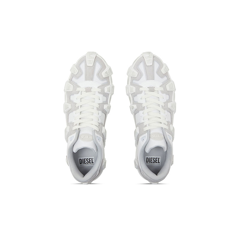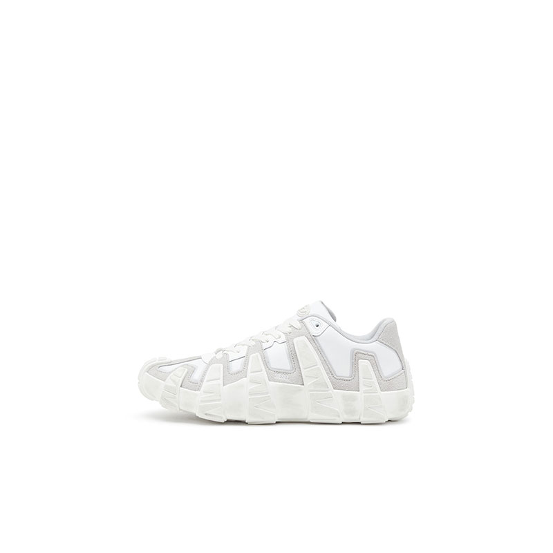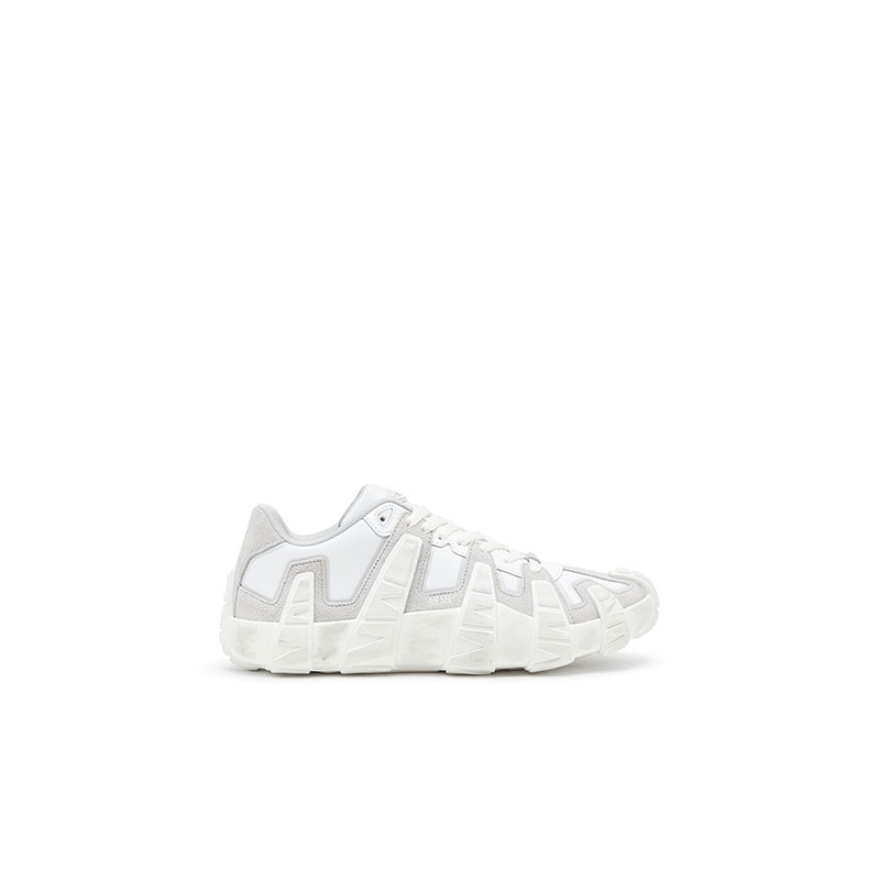 Low lace sneakers made from reinforced technical nylon paired with suede. It features leather reinforcements around the lace area for added durability and a contrast of materials that highlights the shape. An aged effect is added through a special treatment applied to the finished product.