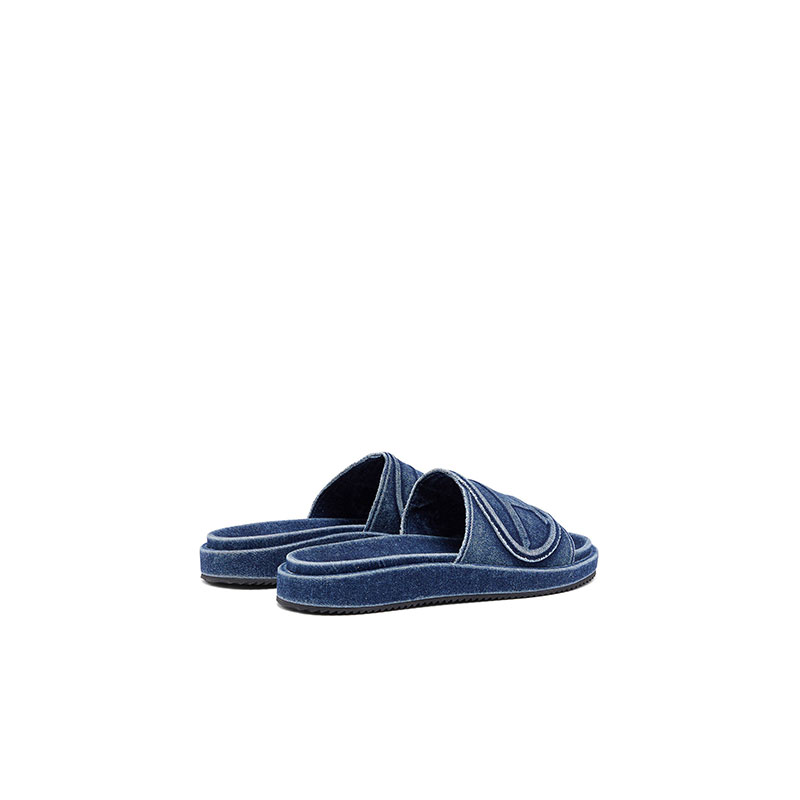 These slides are fully covered in Diesel denim, and feature an embossed Oval D logo on the strap and an ergonomic footbed with a gripped rubber sole.