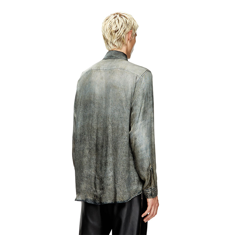 This men's regular-fit shirt is an ode to Diesel's DNA, printed to mimic marbled black denim. The viscose fabric has a fluid drape, made from half responsibly-sourced and half ECOVERO fibres. Hallmarked with a printed D initial on the chest.