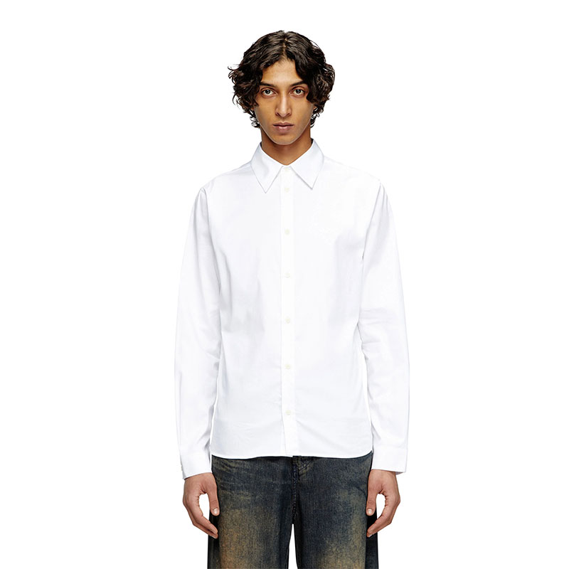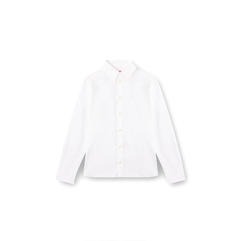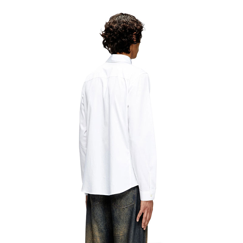 This men's long-sleeve shirt is made from crisp poplin fabric, spun from organic cotton and a hint of stretch. Its slim silhouette is branded with an embroidered Oval D in tonal yarn on the left chest.