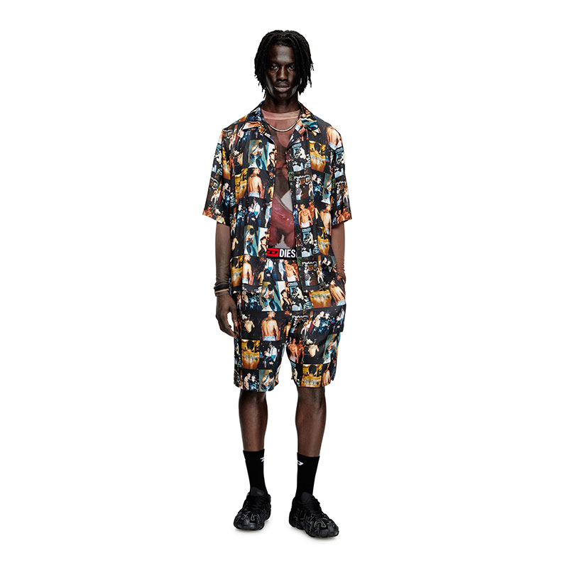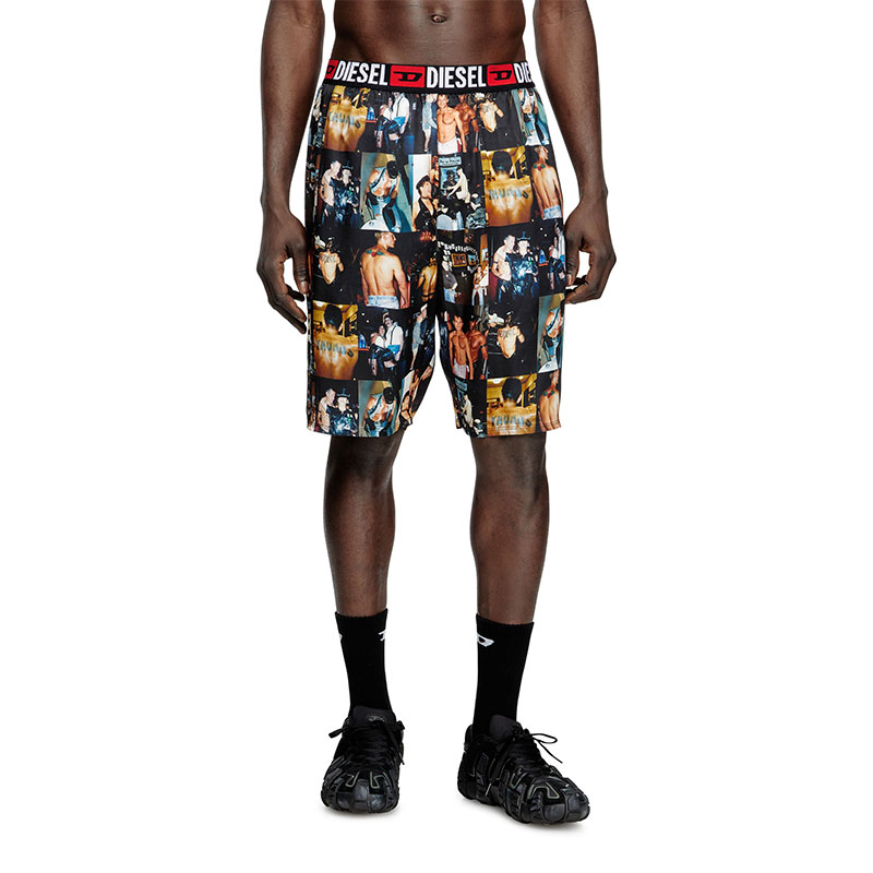 In time for Pride, Diesel once again joins forces with the Tom of Finland Foundation to celebrate the LGBTQIA+ community. These short trousers are cut from fluid viscose and printed all-over with graphics from the association's archives, reaffirming the importance of freedom of expression and sexuality. The waistband is detailed with the Diesel logo, while a custom herringbone tape features an inspiring message from Tom of Finland himself.