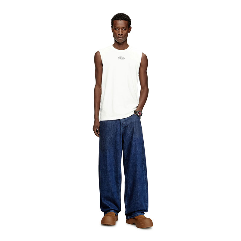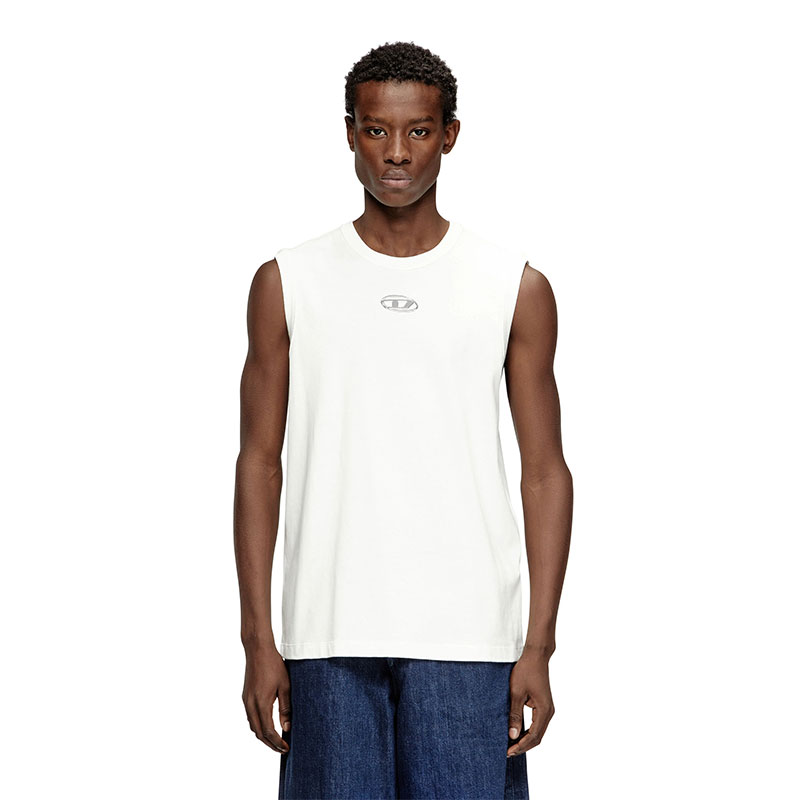 Diesel Men Sleeveless cotton top with metallic Oval D White A217430JMBB