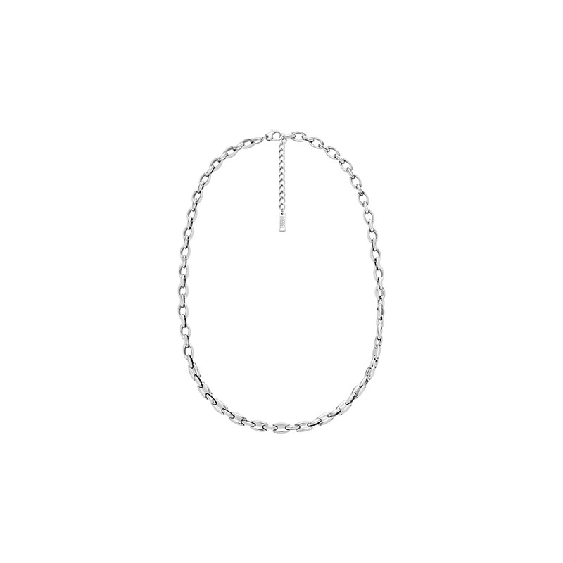 Diesel's stainless steel chain necklace ties into the organic language of the Metamorph watch collection. Offered in a silver color, this necklace features a custom chain design and a lobster clasp closure. A unique piece to add to your jewerly collection!