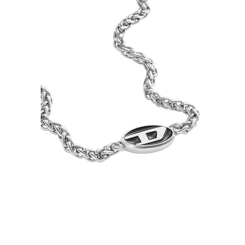 Diesel's chain necklace features black enamel and stainless steel and a lobster clasp closure.