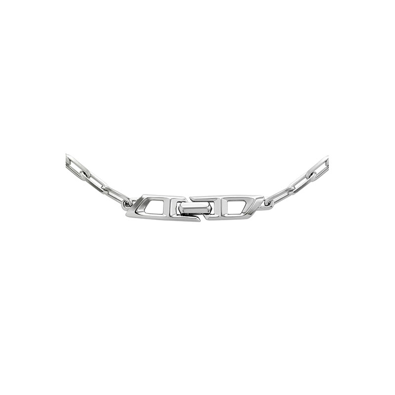 Diesel's sterling silver chain necklace features the iconic D logo with a faceted design. Made from high-quality sterling silver and features a spring ring closure for secure wear. Its sleek design makes it a timeless accessory for any occasion.