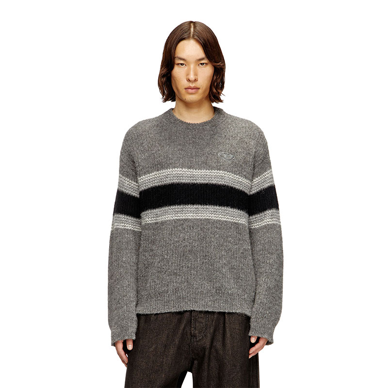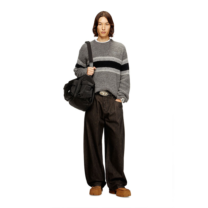 Adorned with bold stripes, this men’s sweater serves up street-edge cool. It’s rib-knitted from a wool-rich alpaca blend in a relaxed, loose fit. Take a closer look to spot the tonal Oval D logo embroidered on the chest.