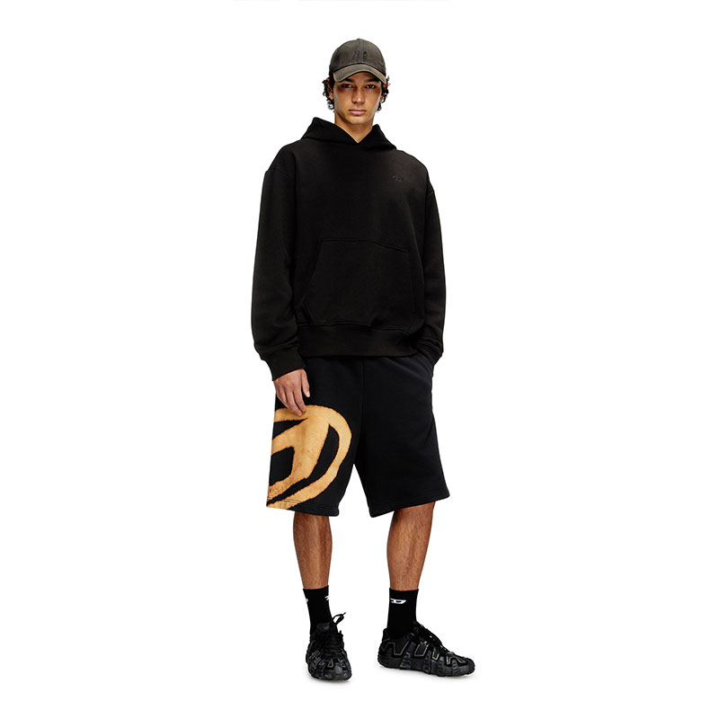 Men's black shorts in loopback cotton jersey. Topped with an adjustable drawstring waist, this pair is cut for a regular fit and emblazoned with a bleached-effect version of the iconic Oval D – the logo is also subtly embroidered on the left hip.