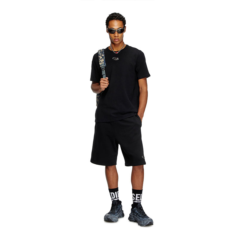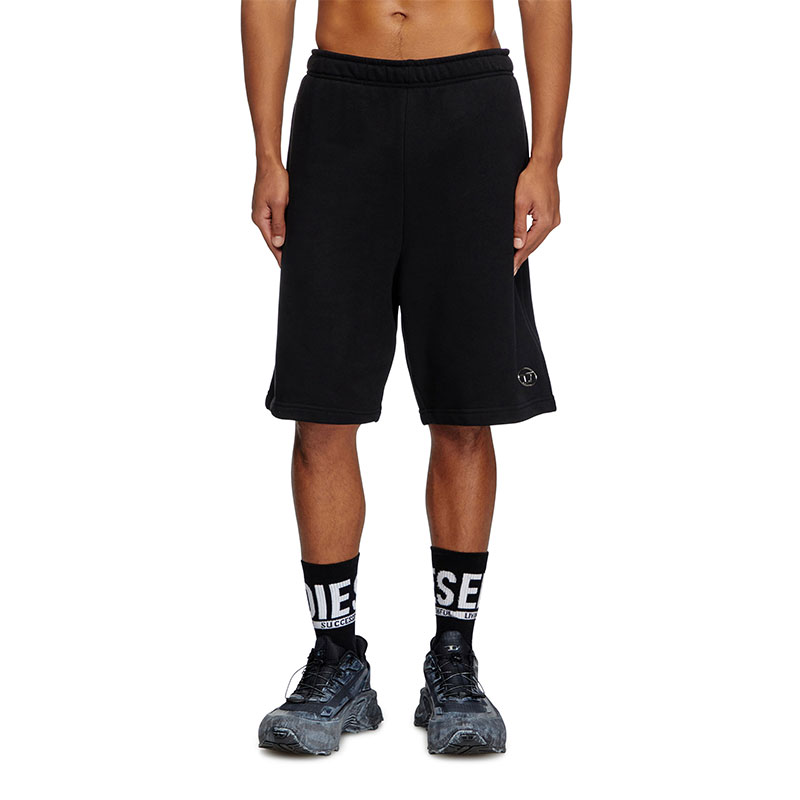 Men's sweat shorts made of pure organic cotton. The soft unbrushed fleece is cut to a regular fit, with slit pockets at the sides, and a comfortable drawstring waist with tonal lacing. The bottom of the left leg is detailed with a silver injection print Oval D.